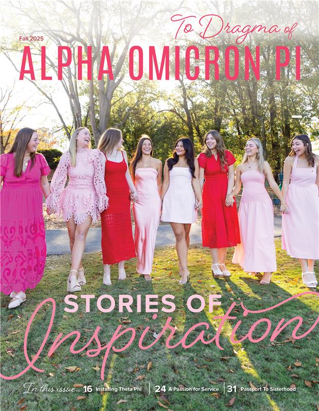 To Dragma is the official magazine of Alpha Omicron Pi Fraternity and has been published since 1905. The mission of To Dragma of Alpha Omicron Pi is: to inform, educate and inspire our readers on subjects relevant to our Fraternity, our chapters, and our members of Greek life; to encourage lifetime AOII involvement; to salute excellence, and to serve as a permanent record of our Fraternity’s history.